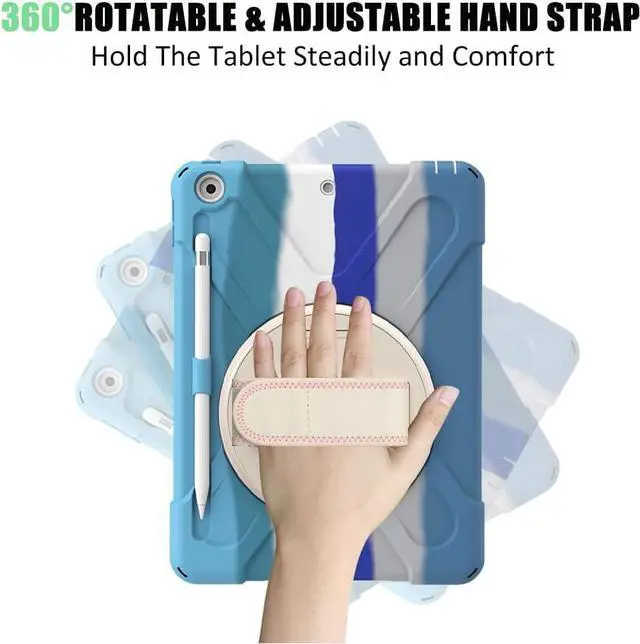 FEATURES: Built-in Kickstand is 360 degree rotating Built-in elastic Pencil Holder Adjustable velcor hand strap Adjustable and detachable Shoulder belt