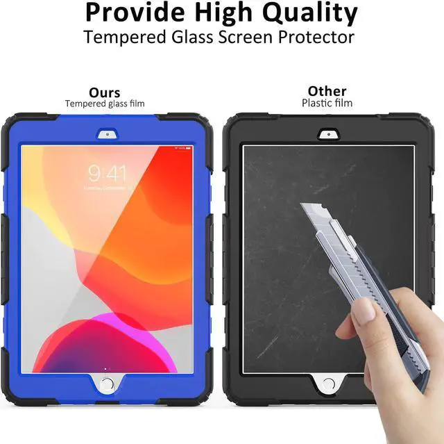 Tempered Glass Screen Protector: 10.2 inch tempered glass screen protector will come with iPad 9th/8th/7th generation case. Premium grade HD tempered glass is scratch-proof, resilient, crystal clear, 0.3mm thickness and long lasting. It is easy installation, case friendly and compatible with Apple pencil after install. Your iPad 9th/8th/7th Generation will get the full coverage, now it is a tank!