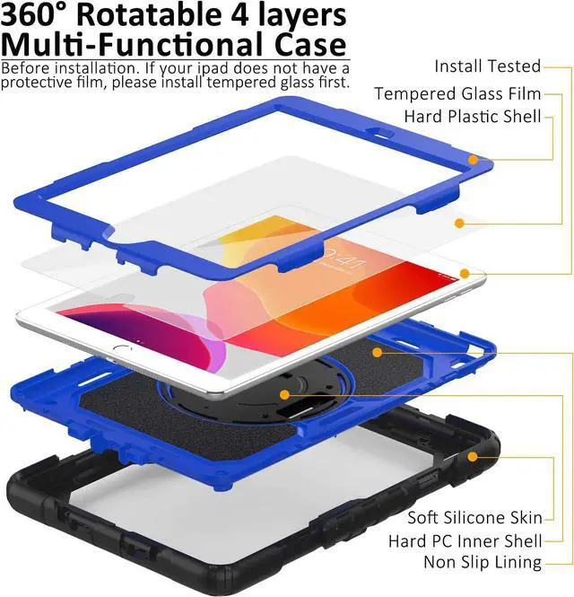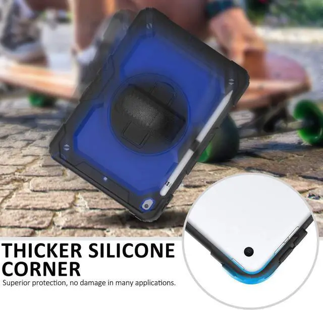 3 Layer Durable Protection: Flexible outer silicone with hard PC inner shell and top PC frame provide the max protection for your iPad 9th/8th/7th generation.The outer silicone is quite thick and soft, it can absorb the impact from accident drop or shock. Totally kid proof product for your iPad 10.2 inch.