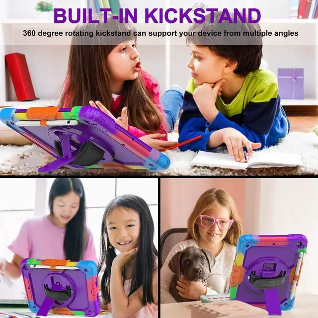 Shoulder Strap & 360° Rotatable Hand Strap/Kickstand: The adjustable hand strap helps you hold your iPad 9th/8th/7th gen easily, it is just as a grip with soft and comfortable feelings. You can get landscape view or vertical view as you want. And you could carry your iPad 10.2'' anywhere convenience with the shoulder strap. The length of the shoulder strap can be adjusted to fit adults or kids. With the rotating kickstand, you could get the watching angle and typing angle as you want.