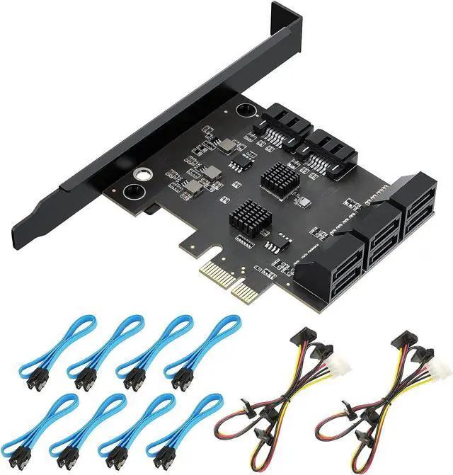 What You Get : 1 x 8-port SATA 3.0 controller card, 8 x SATA cable, 2 x SATA power splitter cable, 1 x user manual