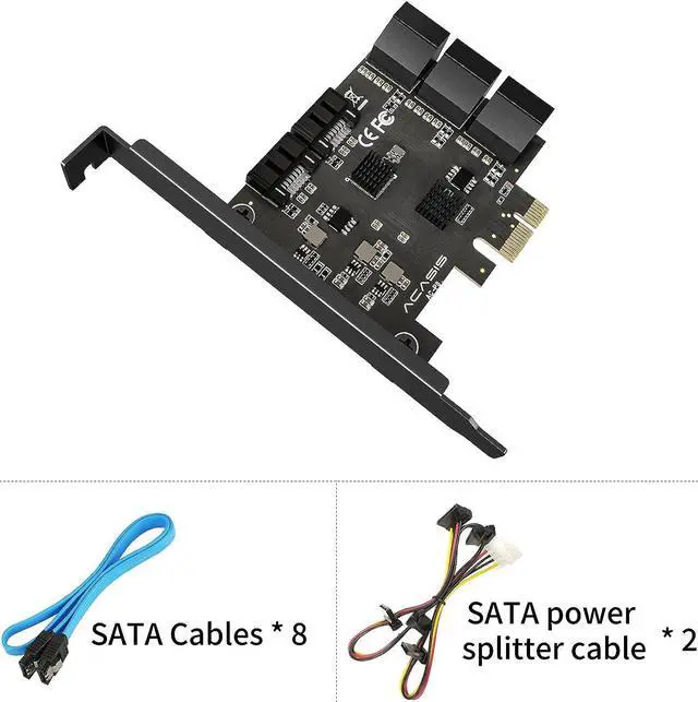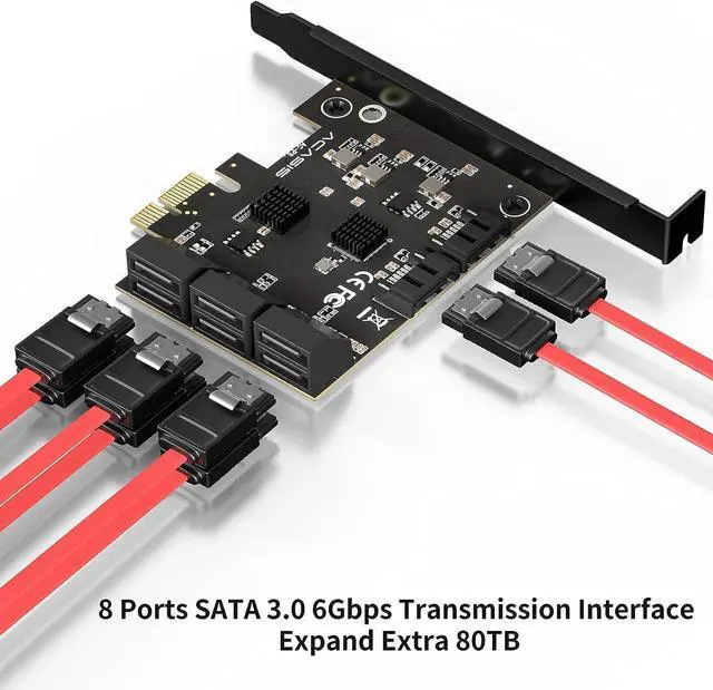 8 Ports SATA 3.0 Adapter Card: Acasis SATA card is equipped with 8 SATA 3.0 interfaces and supports the simultaneous connection of 8 SATA hard disks, the transfer speeds up to 6Gbps, You could add 8 6Gb/s SATA 3.0 devices to your computer with this PCIe SATA card