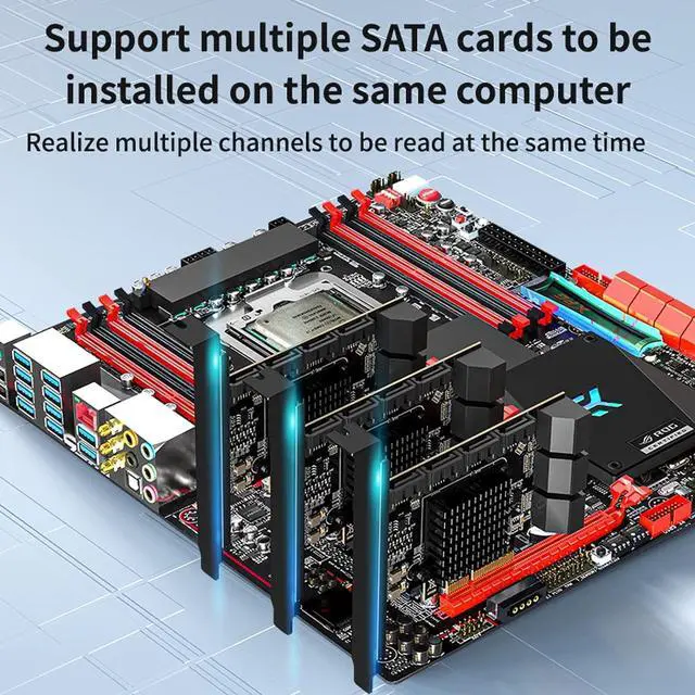 10 Ports SATA 3.0 Adapter Card: Acasis SATA card is equipped with 10 SATA 3.0 interfaces and supports the simultaneous connection of 10 SATA hard disks, the transfer speeds up to 6Gbps