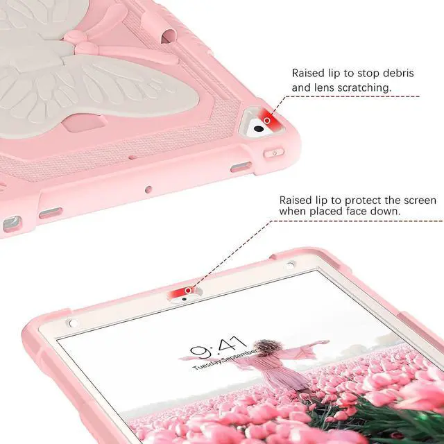 Butterfly Wings KickstandSturdy built-in butterfly kickstand,when you want to typing, gaming or watching video not have to hold the iPad at the same time