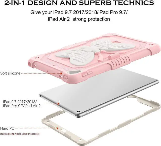 Designed For iPad 6th 5th Generation /iPad Air 2/iPad Pro 9.7This case designed for Apple iPad 9.7 Inch 2018 6th Generation (model:A1893/A1954), iPad 9.7 Inch 2017 5th Generation (model:A1822/A1823), iPad Air 2 ((model:A1566/A1567)iPad Pro 9.7 inch 2016 (model: A1673 A1674 A1675) Not fit other iPad.Please check your tablet model before purchasing.