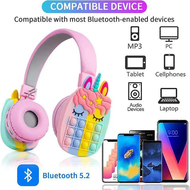 Bluetooth Wireless Headphones for Kids Girls WomenThis kids bluetooth headphones adopts the newest bluetooth 5.2 version that supports connect to various devices with bluetooth like smartphones, tablet, PC and music players. It also can use as a wired headphones (with 3.5mm Aux-in jack) that will be convenient when this headphones out of power. [NOT come with an audio cable]
