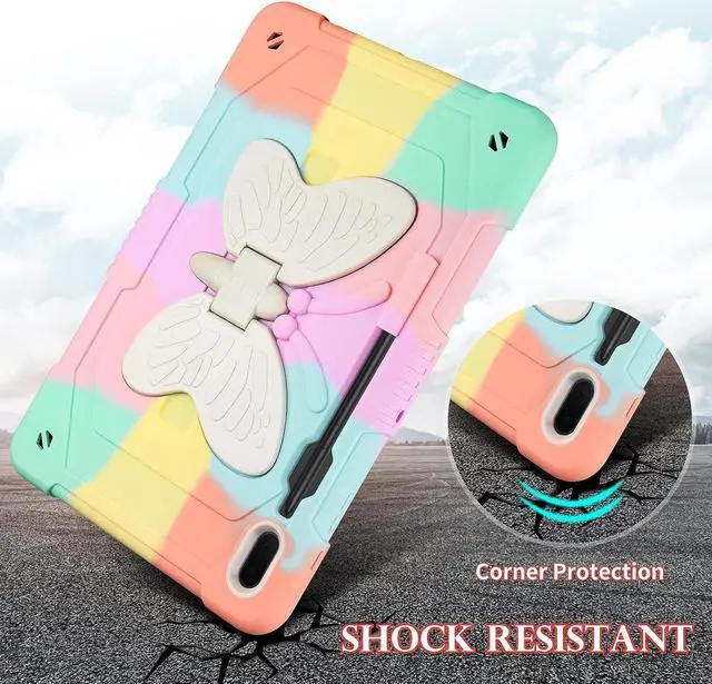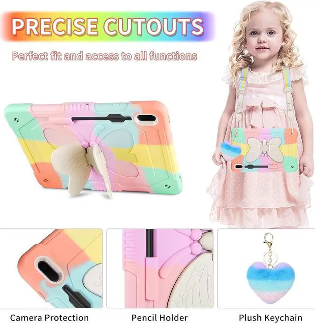 Nice Tablet Case for ChildrenThe butterfly kickstand and cute keychain are unique and eye-catching, bringing joy to every child and making it more convenient for them to use tablets in their daily life which will be a special & practical children's holiday gift, suitable for kids girls boys or teens using. Any defective for this galaxy tab s7 fe case, please feel free to message us, we will offer you the suitable solution within 1 working day.