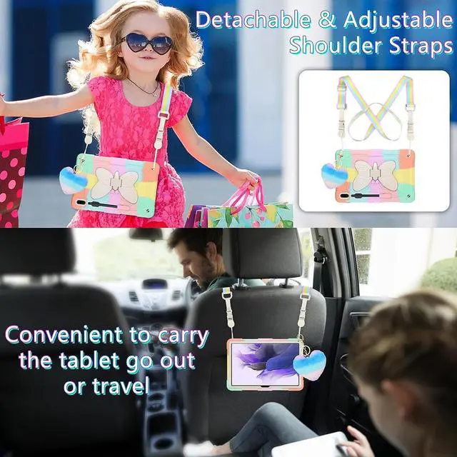 Butterfly Kickstand/ Lanyard/ KeychainBuilt-in sturdy butterfly kickstand is useful which can be used as horizontal stand makes you more convenient to read, type, browse website, watch movies or face video with friends. This galaxy tab s7 fe case also come with lanyard and cute key chian which will convenient to carry-on ipad.