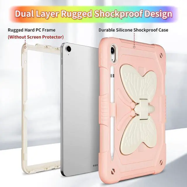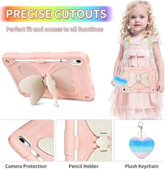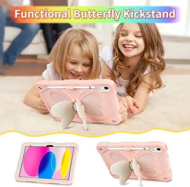 Nice iPad Case for ChildrenThe butterfly kickstand and cute heart keychain are unique and eye-catching, bringing joy to every child and making it more convenient for them to use tablets in their daily life which will be a special & practical children's holiday gift, suitable for kids girls boys or teens using. Any defective for this iPad 10th generation case, please feel free to message us, we will offer you the suitable solution within 1 working day.