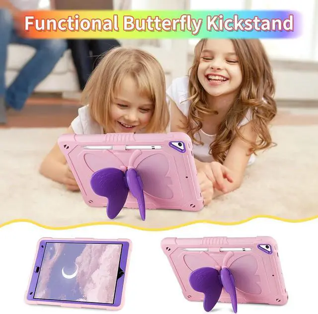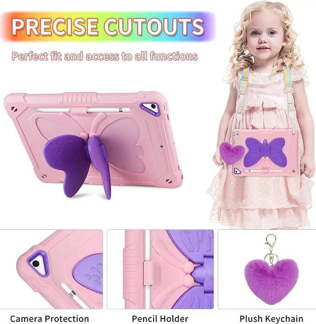 Nice iPad Case for ChildrenThe butterfly kickstand and cute keychain are unique and eye-catching, bringing joy to every child and making it more convenient for them to use tablets in their daily life which will be a special & practical children's holiday gift, suitable for kids girls boys or teens using. Any defective for this iPad air 5 case, please feel free to message us, we will offer you the suitable solution within 1 working day.