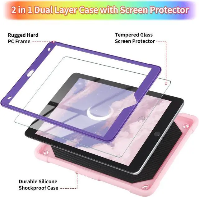 2 in 1 Rugged Case with Screen ProtectorThis iPad air 5 case with hard PC frame & high-quality silicone back cover, dual layer drop proof design is rugged, provides a strong protection to the tablet. It also comes with a screen protector, which made of hardness tempered glass, protects the screen from bumps and scratches.