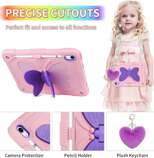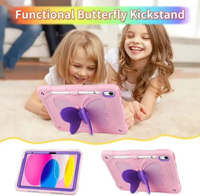 Nice iPad Case for ChildrenThe butterfly kickstand and cute keychain are unique and eye-catching, bringing joy to every child and making it more convenient for them to use tablets in their daily life which will be a special & practical children's holiday gift, suitable for kids girls boys or teens using. Any defective for this iPad 10th generation case, please feel free to message us, we will offer you the suitable solution within 1 working day.
