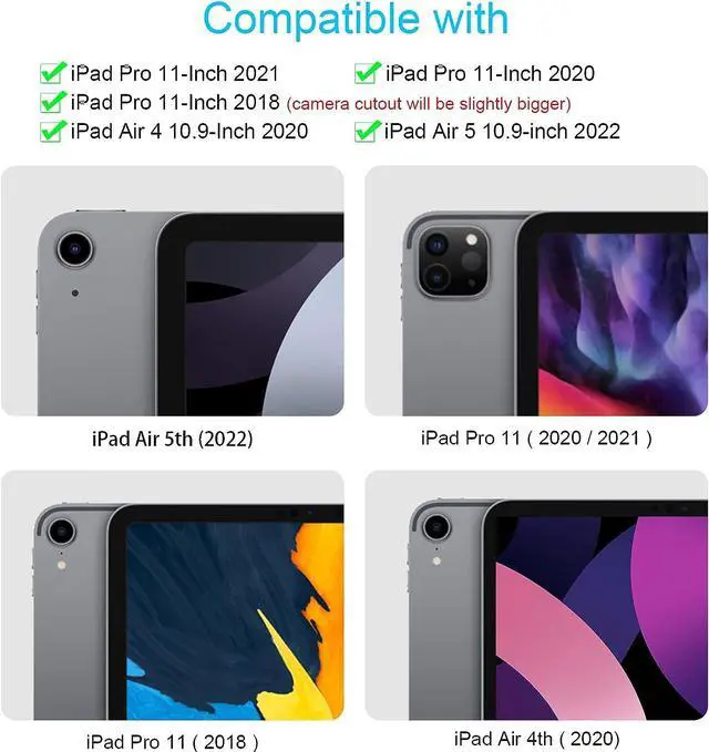 Compatible ModelDesigned for iPad Air 5th generation 2022 /iPad Air 4th generation 2020 (10.9 inch) and iPad Pro 11 3rd 2nd 1st 2021 2020 2018 (11 inch), Please confirm your iPad model before you order this case. [No include screen protector]