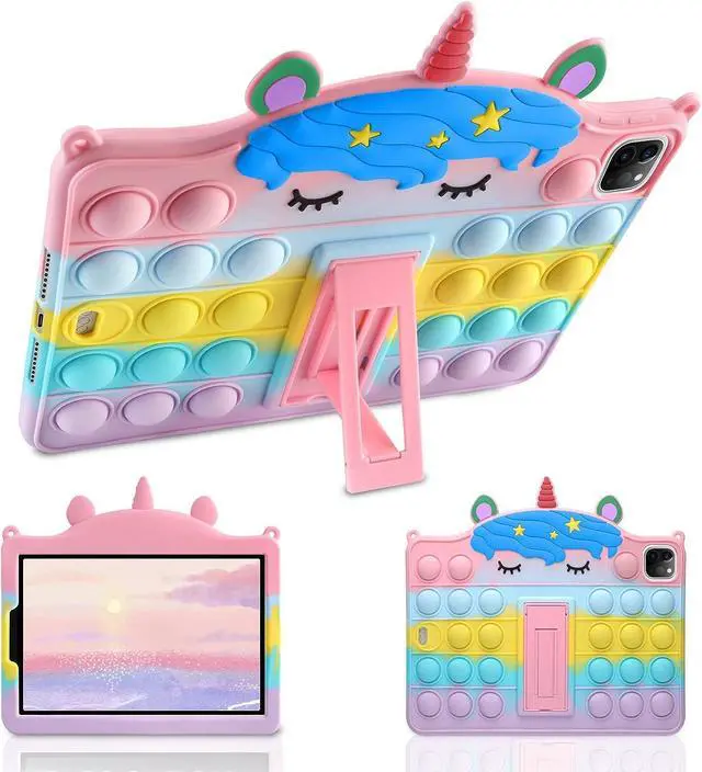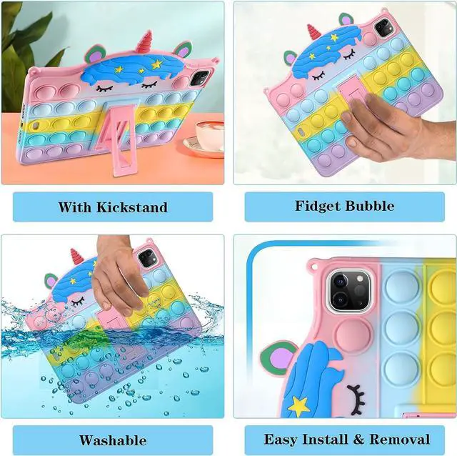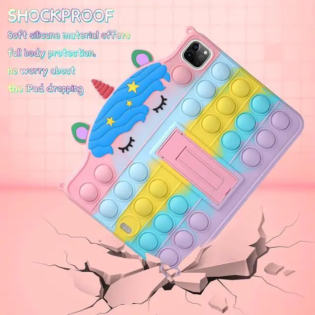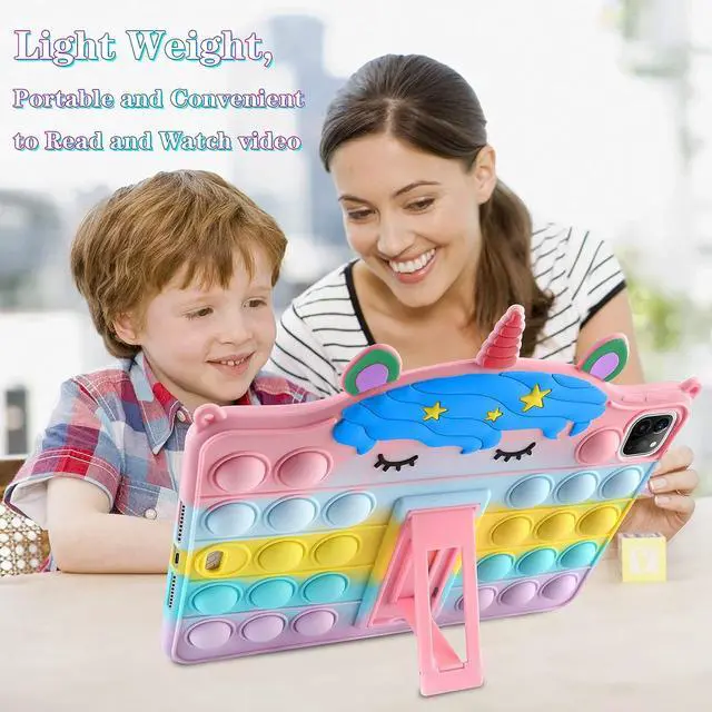 Silicone Case with KickstandHigh-quality silicone material brings a soft touch to this iPad case, protects your tablet from bumps and scratches. Kickstand design is useful which can be used as horizontal stand makes you more convenient to read , browse website, watch movies or face video with friends.