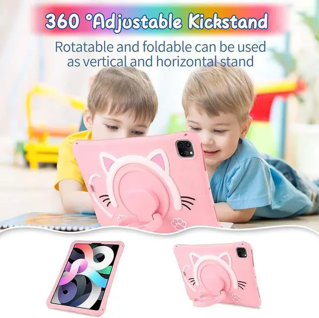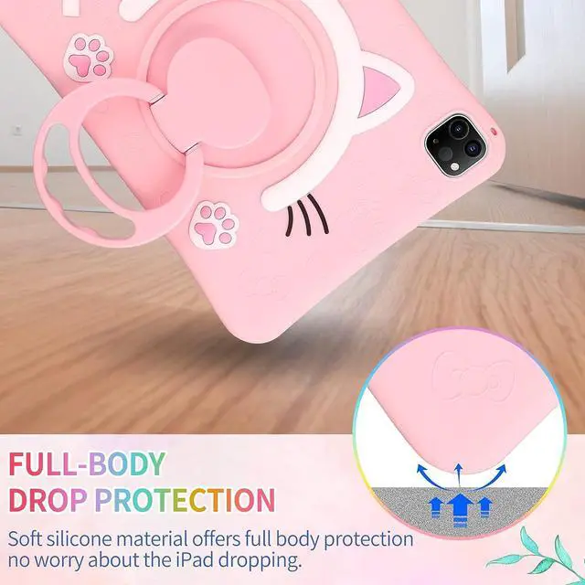 Cat Face Silicone CaseCute cat cartoon is personalized and unique for eyes catching. Cartoon Pattern is suitable for kids girls boys using. High-quality silicone material brings a soft touch to this iPad 10.9 case, protects your tablet from bumps and scratches.