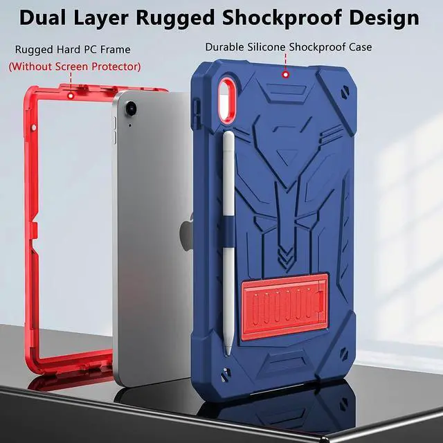 Shockproof Dual Layer & KickstandThis ipad 10th generation case with hard PC frame & high-quality silicone back cover, provides a strong protection to the tablet, protects your tablet from bumps, impacts and scratches. Built-in sturdy kickstand is useful which can be used as horizontal or vertical stand makes you more convenient to read, type, browse website, watch movies or face video with friends.