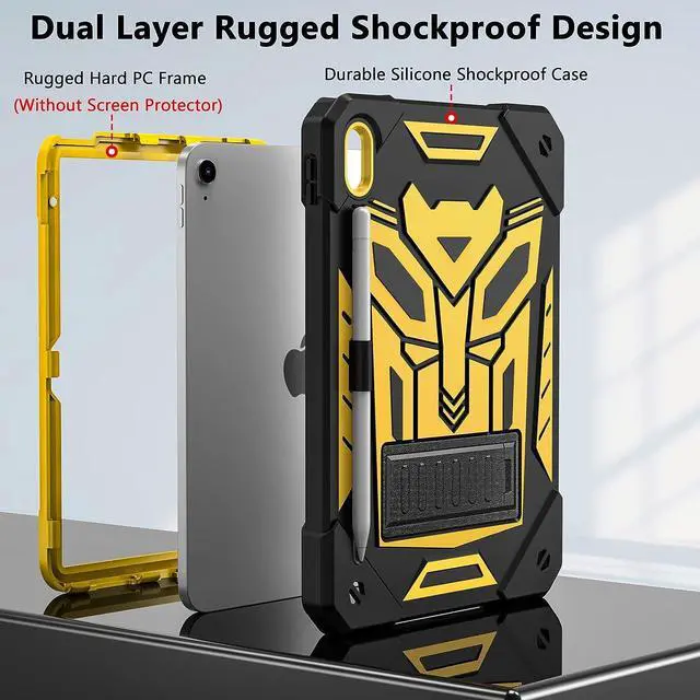 Shockproof Dual Layer & KickstandThis ipad 10th generation case with hard PC frame & high-quality silicone back cover, provides a strong protection to the tablet, protects your tablet from bumps, impacts and scratches. Built-in sturdy kickstand is useful which can be used as horizontal or vertical stand makes you more convenient to read, type, browse website, watch movies or face video with friends.