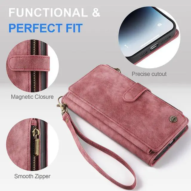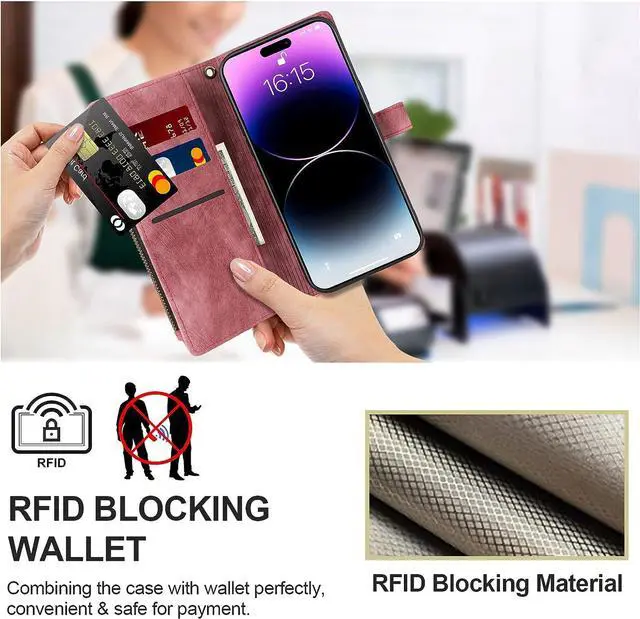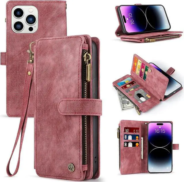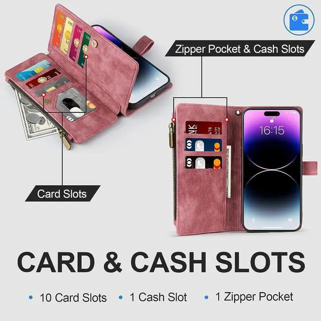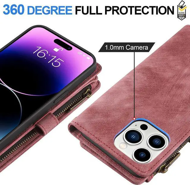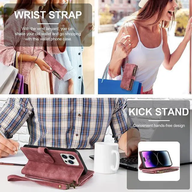 Mutil-Function Phone CaseThis iphone 14 pro max wallet case supports kickstand function makes you more convenient to read , browse website or face time with friends or family. This phone case will come with detachable wrist-let strap, convenient to carry the phone when you in shopping, travel or go out.