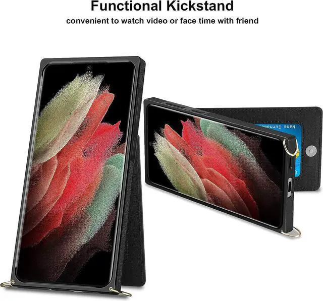 [Functional Case Compatible with galaxy S21 ultra with 4 Card Slots] - 4 hidden card slots,meet most needs of daily life such as insert id card/ credit card/ debit card/ driving license and a few cash at the same time