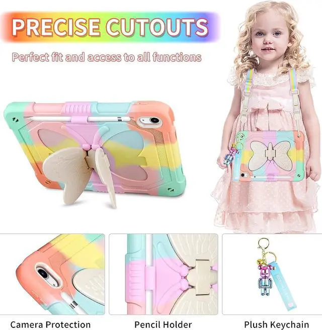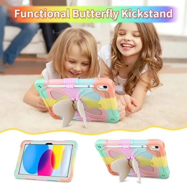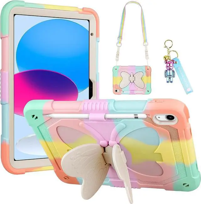 Nice iPad Case for ChildrenThe butterfly kickstand and cute keychain are unique and eye-catching, bringing joy to every child and making it more convenient for them to use tablets in their daily life which will be a special & practical children's holiday gift, suitable for kids girls boys or teens using. Any defective for this iPad 10th generation case, please feel free to message us, we will offer you the suitable solution within 1 working day.