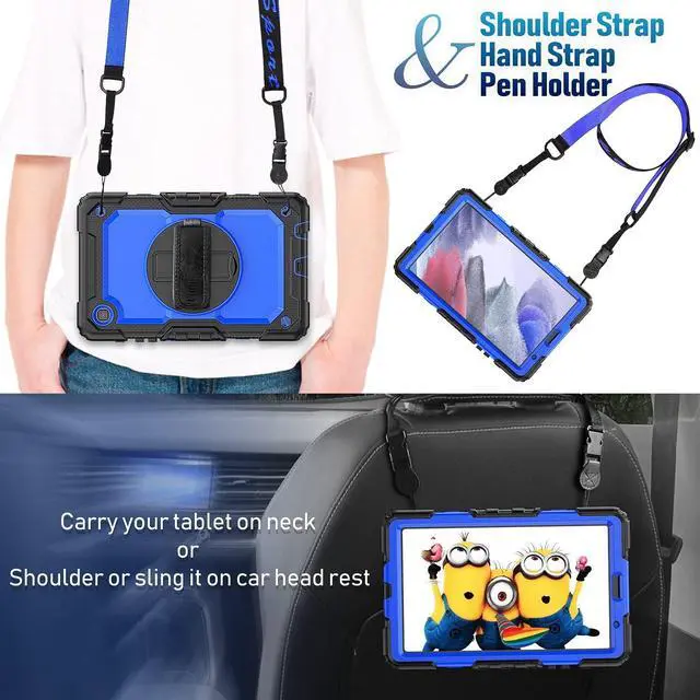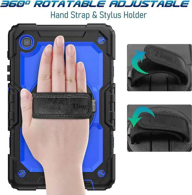 Adjustable Hand/Shoulder StrapThe back turntable built-in a hand strap, when you put your hand into the strap, you can firmly grasp the center of gravity of your Galaxy Tab A7 Lite tablet. Additional adjustable shoulder strap up to 49 inches ,it can be attached to the case for carrying your device.