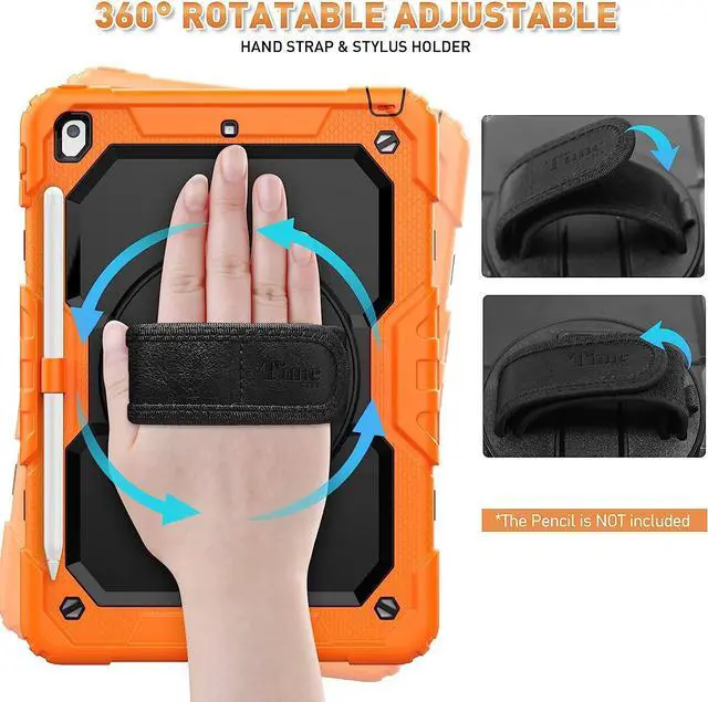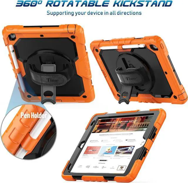 Stand + Shoulder Strap \u2014 The gorgeous 10.2-inch Retina display is an amazing way to watch movies or draw your next masterpiece. However, it also needs a free display angle. This case provides a bracket that can rotate 360 stand and adjustable length shoulder strap. The stand can provide multi -angle support. The shoulder strap can hang your iPad somewhere.