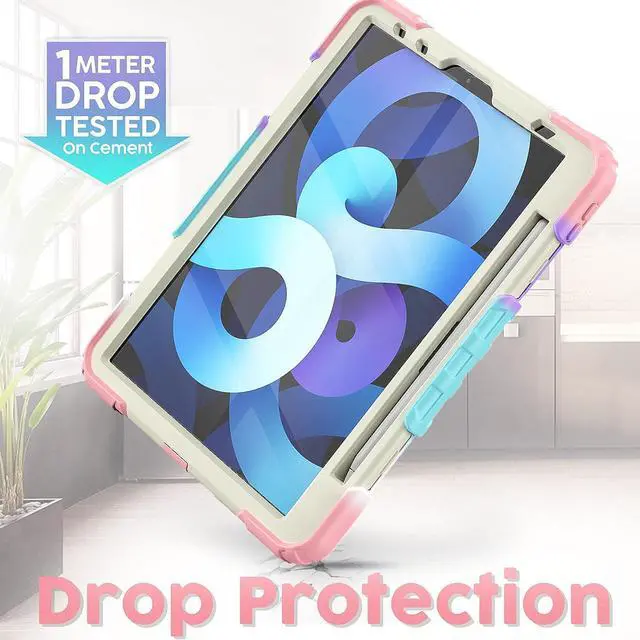 [All-Around Protection] 3 layers protection combined with "Front frame with built-in screen protector\u201d + \u201chard PC back cover\u201d + \u201csoft silicone outer shell". This rugged case offers commprehensive protection to your ipad when your ipad is dropped and Scratched.