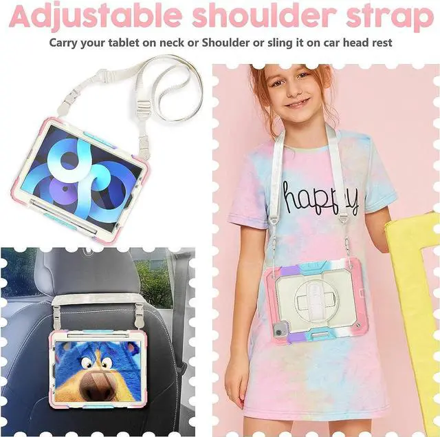 [Anti-Fall Hand /Shoulder Strap] The back turntable built-in a hand strap, when you put your hand into the strap, you can firmly grasp the center of gravity of your tablet. Additional adjustable shoulder strap up to 49 inches ,it can be attached to the case for carrying your device.
