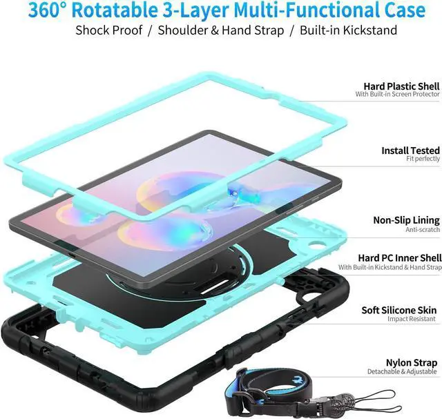 [Full Protection] 3 Layers protective case for Samsung Galaxy Tab S6 Lite 10.4 inch, includes Soft Silicone, hard PC back shell and front frame,cocooning your device well. Hard and Sturdy PC back plate and frame protect your device when it suffers an accidental drops. The thick silicone rubber around the case as a buffer absorbs most of impacts and provides corner protection.