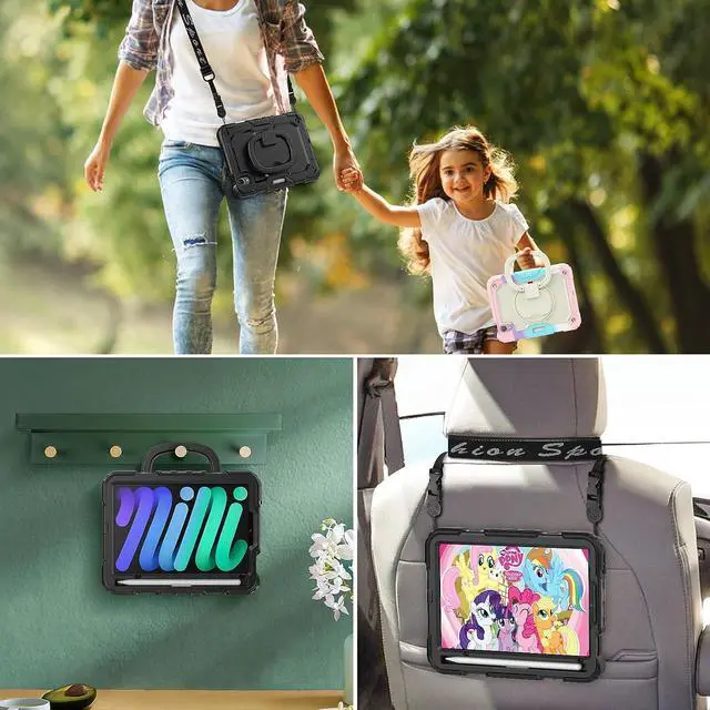 Stand + Shoulder Strap \u2014 The gorgeous 10.2 inch Retina display is an amazing way to watch movies or draw your next masterpiece. However, it also needs a free display angle. This case provides a bracket that can rotate 360 stand and adjustable length shoulder strap. The stand can provide multi -angle support. The shoulder strap can hang your iPad somewhere.