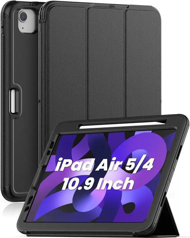iPad Air 5th/4th Generation Case 10.9 Inch 2022/2020, Sturdy Heavy Duty Shockproof Protection Folio Stand Case with Smart Cover Auto Sleep/Wake for iPad Air 5/ Air 4 10.9 Inch, Black