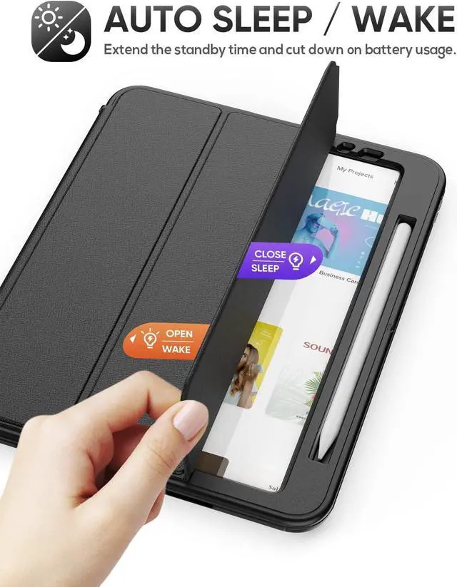 AUTO SLEEP/WAKE- Magnetic smart cover supports automatic sleep/wake feature, which gives extra protection for your device and helps to extend the standby time of your iPad.