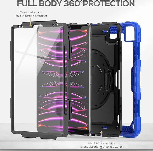 FULL PROTECTION- 3-layer total front-and-back protective case protects your iPad Pro 12.9 against drops, scratches, shocks and scuffs. The hard internal shell, soft silicone exterior and built-in screen protector deflect everyday action and accidents. Soft-touch material offers a comfortable grip.