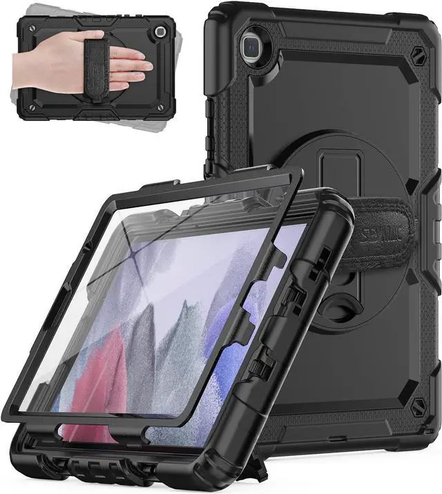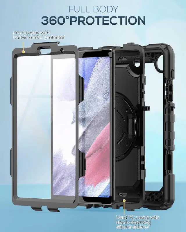 FULL PROTECTION- 3-layer total front-and-back protective case protects your Galaxy Tab A7 Lite 8.7 Inch against drops, scratches, shocks and scuffs. The hard internal shell, soft silicone exterior and built-in screen protector deflect everyday action and accidents. Soft-touch material offers a comfortable grip.