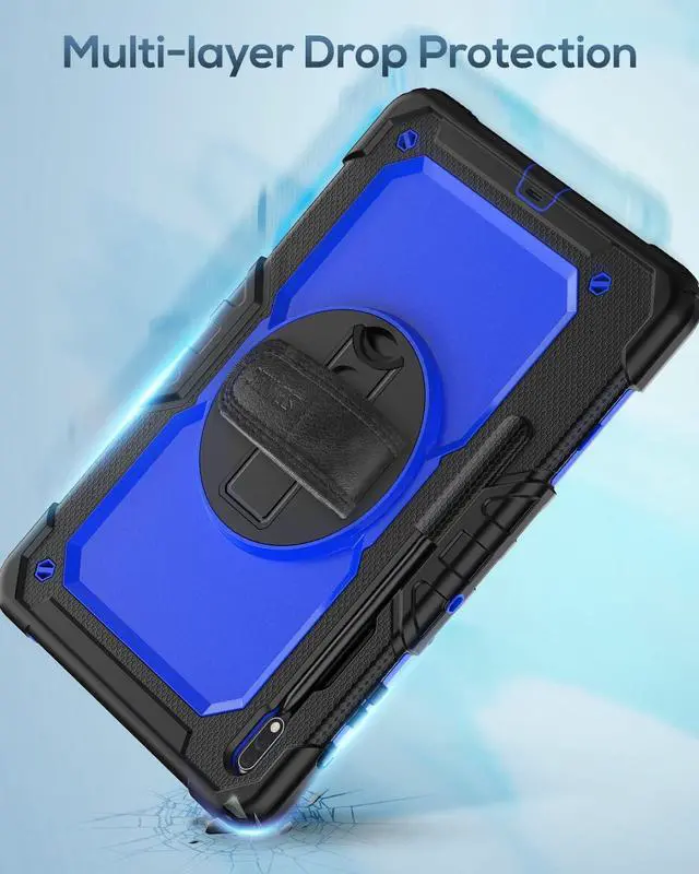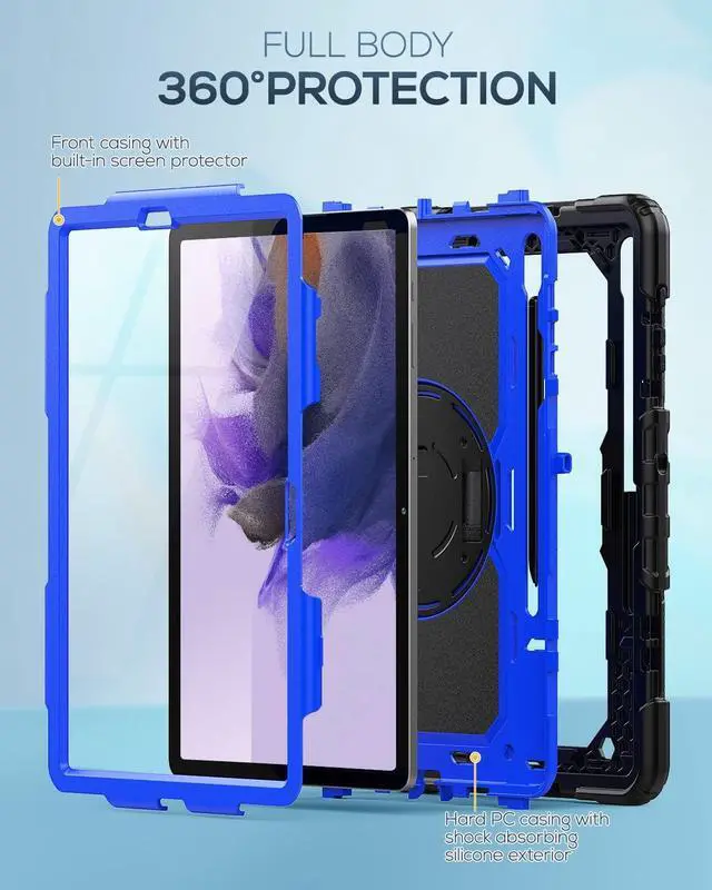 FULL PROTECTION- 3-layer total front-and-back protective case protects your Galaxy Tab S7 Fe/Tab S8 Plus against drops, scratches, shocks and scuffs. The hard internal shell, soft silicone exterior and built-in screen protector deflect everyday action and accidents. Soft-touch material offers a comfortable grip.