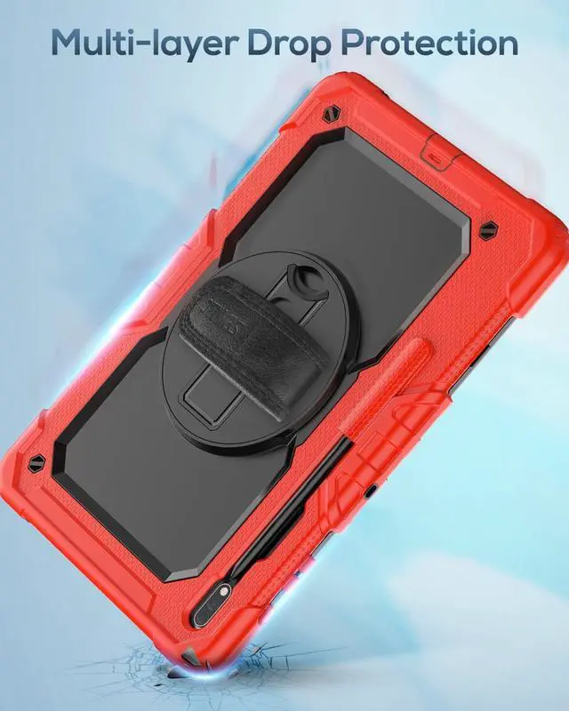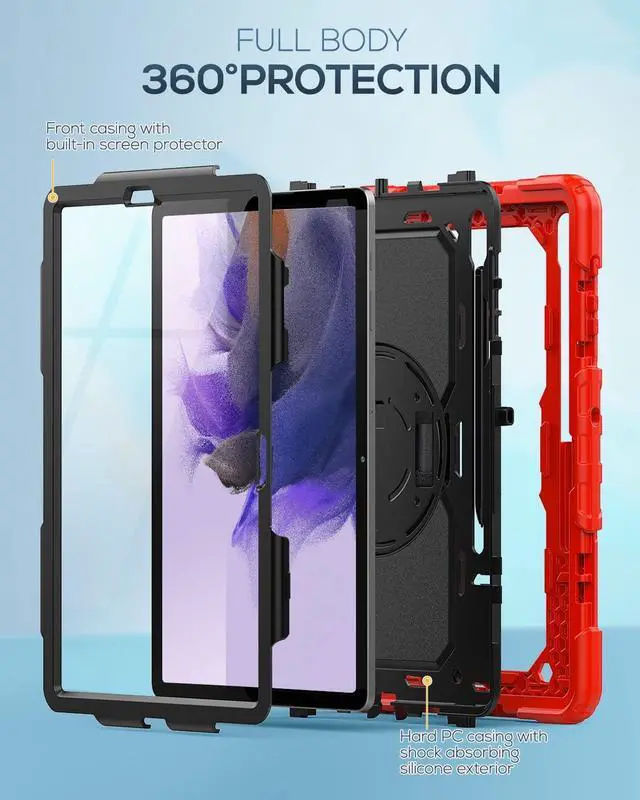 FULL PROTECTION- 3-layer total front-and-back protective case protects your Galaxy Tab S7 Fe/Tab S8 Plus against drops, scratches, shocks and scuffs. The hard internal shell, soft silicone exterior and built-in screen protector deflect everyday action and accidents. Soft-touch material offers a comfortable grip.