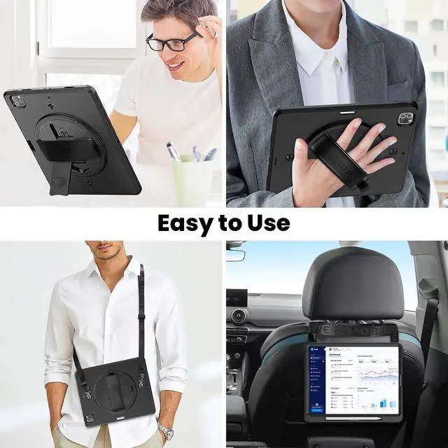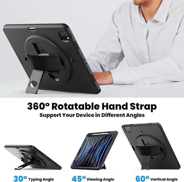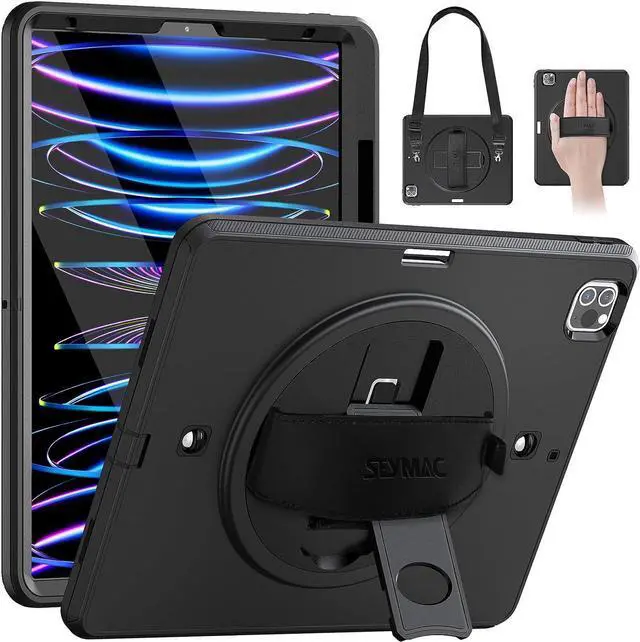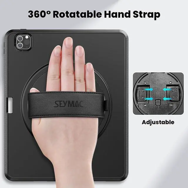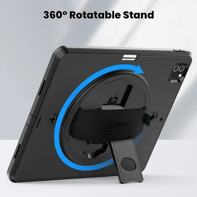 STABLE STAND AND ROTATING HANDLE- With its rotatable kickstand, the iPad Pro 12.9 Inch case supports hands-free usage at multiple angles in portrait or landscape mode, making it convenient for both work and entertainment. Adjustable hand strap easier to hold, the anti-slip material prevents slipping out of your hand.