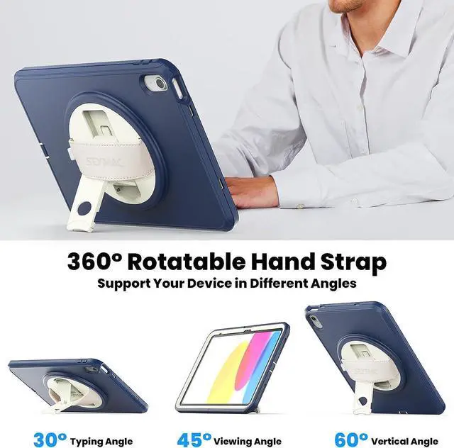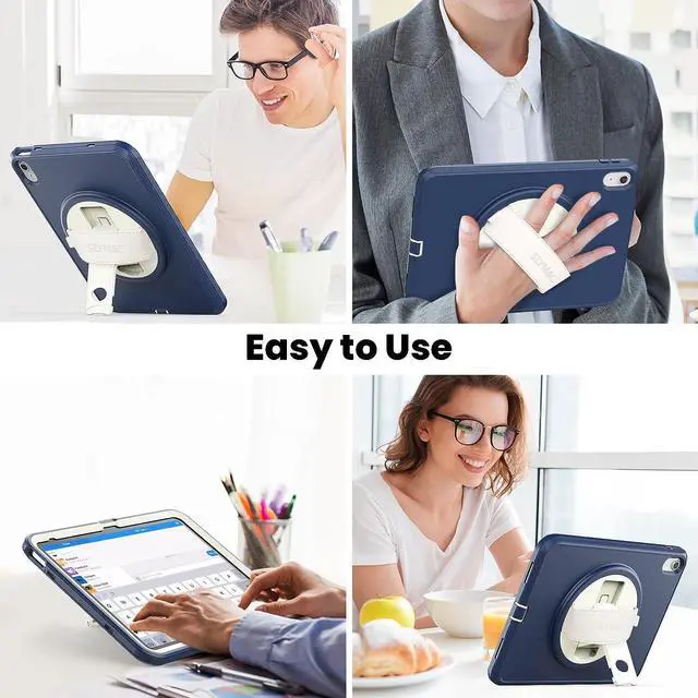 EASY-TO-USE HAND STRAP- With the adjustable handle on the back, you can hold your iPad 10th Gen securely with single hand, and let your other hand free do other things. Easy access to all buttons and ports with the case on, such as Touch ID, power button, headphone port, cameras, etc.