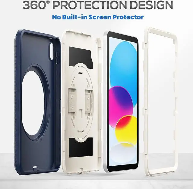 SHOCKPROOF PROTECTION- 3-layer total front-and-back protective case protects your iPad 10th Gen against drops, scratches, shocks and scuffs. The hard internal shell and soft TPU exterior deflect everyday action and accidents.Please Note: No Built-in Screen Protector