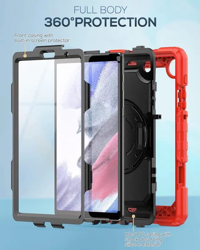 FULL PROTECTION- 3-layer total front-and-back protective case protects your Galaxy Tab A7 Lite 8.7 Inch against drops, scratches, shocks and scuffs. The hard internal shell, soft silicone exterior and built-in screen protector deflect everyday action and accidents. Soft-touch material offers a comfortable grip.