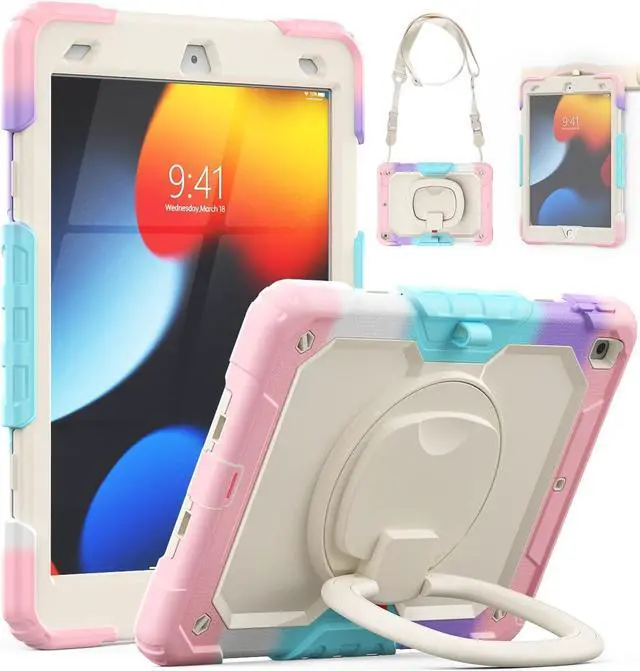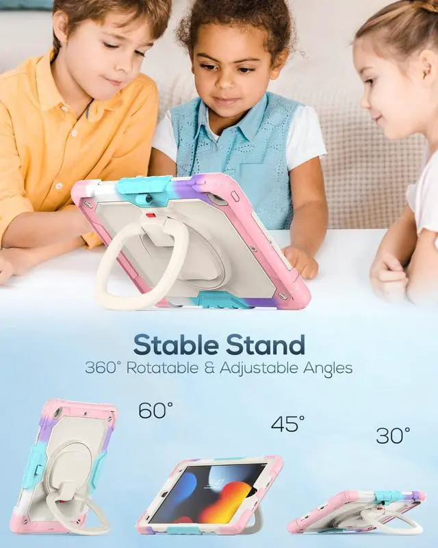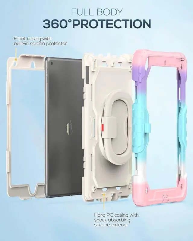 360° ROTATING STAND - HANDLEThe tablet case comes with a 360-degree rotating handle, it can be used as a stand, making it easy to use your tablet hands-free, for anything from video calls to watching movies. You can adjust the stand to the comfortable angles as you like. It can also be hung up on your arm or carried by your hand, adding convenience.