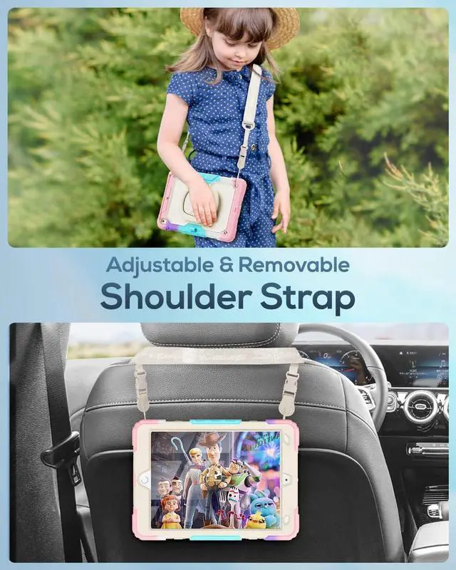 KIDS-FRIENDLY SHOULDER STRAPThe adjustable and removable shoulder strap is kids-friendly, makes it easy for kids to carry around, ensuring maximum portability. It can also hang on the headrest of car seat to creates a mini theater for kids. And, built-in loop secures your pencil, so you always know where it is.