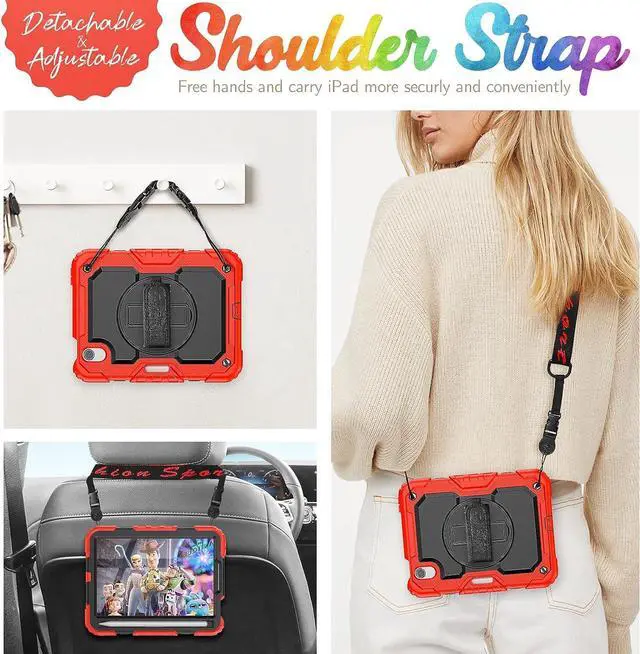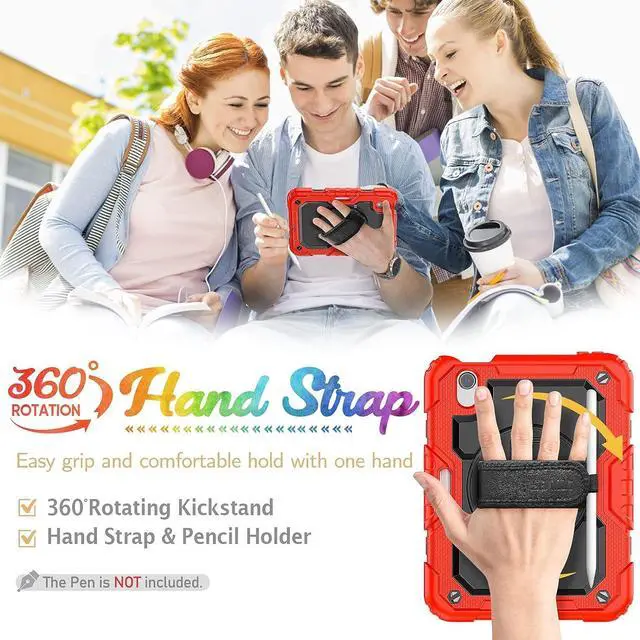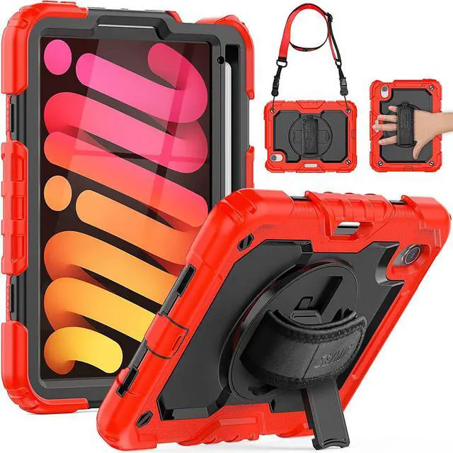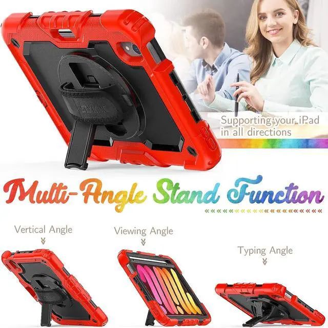 MULTIFUNCTION - This iPad Mini 6th Generation Case 2021 with optional functions like the 360°rotating hand strap, built-in kickstand, adjustable shoulder strap. Hand strap allows you to hold your ipad securely and easily. Built-in kickstand gives your the most comfortable angle for viewing and typing. Shoulder strap let you easily carry your ipad mini 6 everywhere you go. All these fetures make it such a versatile yet stylish case.