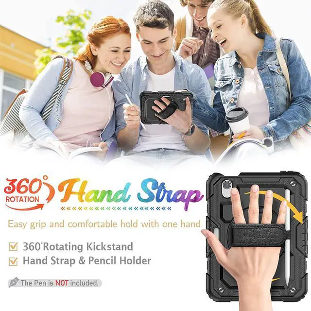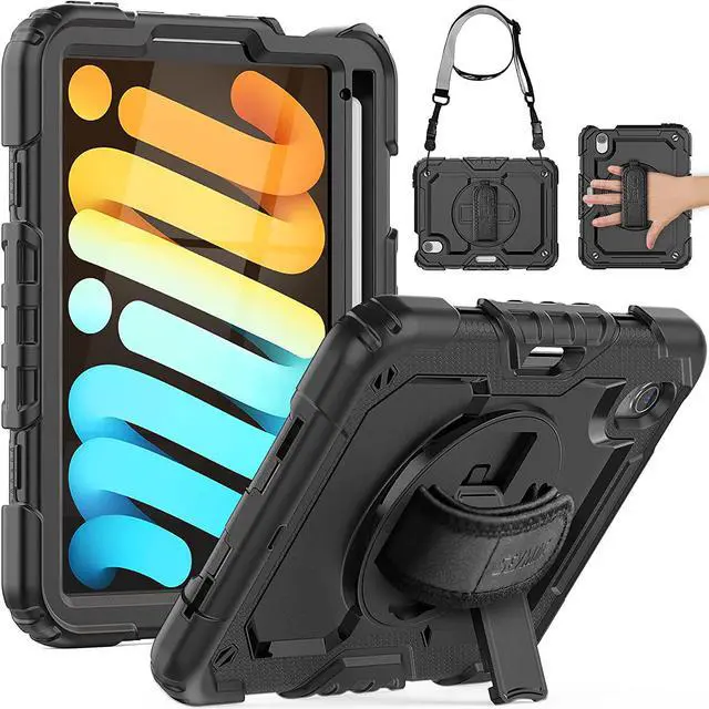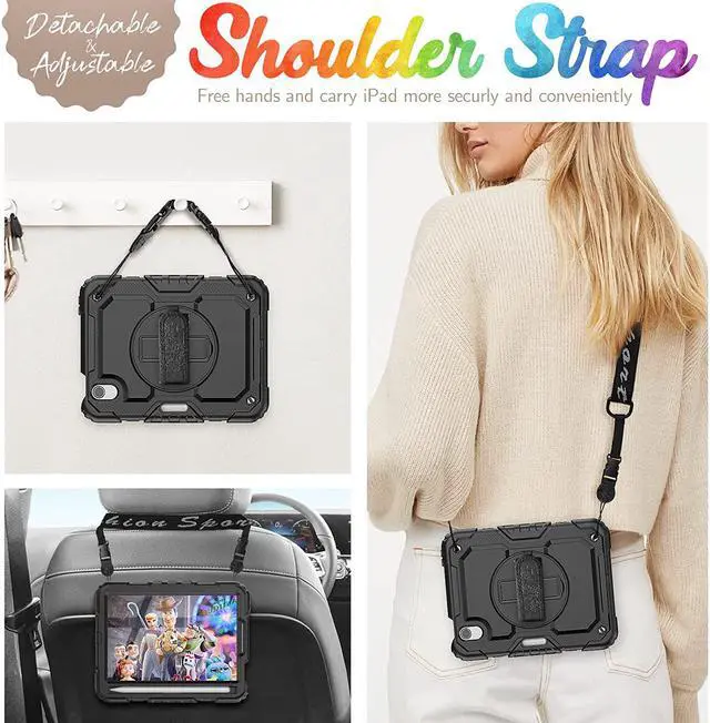 MULTIFUNCTION - This iPad Mini 6th Generation Case 2021 with optional functions like the 360°rotating hand strap, built-in kickstand, adjustable shoulder strap. Hand strap allows you to hold your ipad securely and easily. Built-in kickstand gives your the most comfortable angle for viewing and typing. Shoulder strap let you easily carry your ipad mini 6 everywhere you go. All these fetures make it such a versatile yet stylish case.