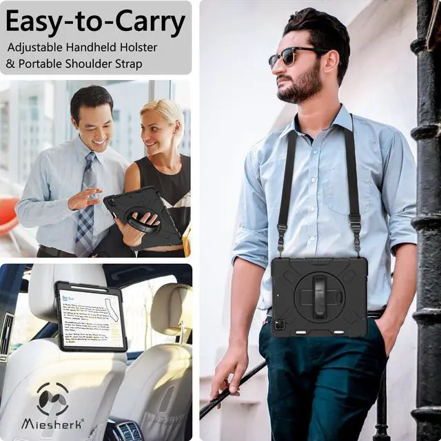 STABLE ROTATABLE KICKSTAND & ADJUSTABLE HANDHELD: iPad 12.9 case 360° rotating foldable stand provides multiple angles(30°/45°/60°), nice to view, typing, or draw. Ergonomically adjustable hand strap easier to hold, the matte coating prevents slipping out of your hand.