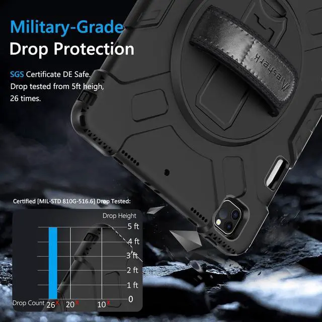 ENHANCED FULL-BODY PROTECTION &10-SHOCK: iPad 12.9 Pro Case exceed 2X Military Grade Drop Test Standard [MIL-STD 810G-516.6], Triple full-body heavy-duty protection provides up to 15ft drop protection, made of 2 durable PC and 1 flexible TPU bumper lasts 10× shock-resistant. Upgrade built-in sponge technology adds extra heat-dissipation.