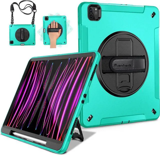 Case for iPad Pro 12.9 2022/2021: Military Grade Heavy Duty Shockproof Cover for iPad Pro 12.9 Inch 6th/5th Generation- Pencil Holder - Rotating Stand - Hand/Shoulder Strap - Jade Green