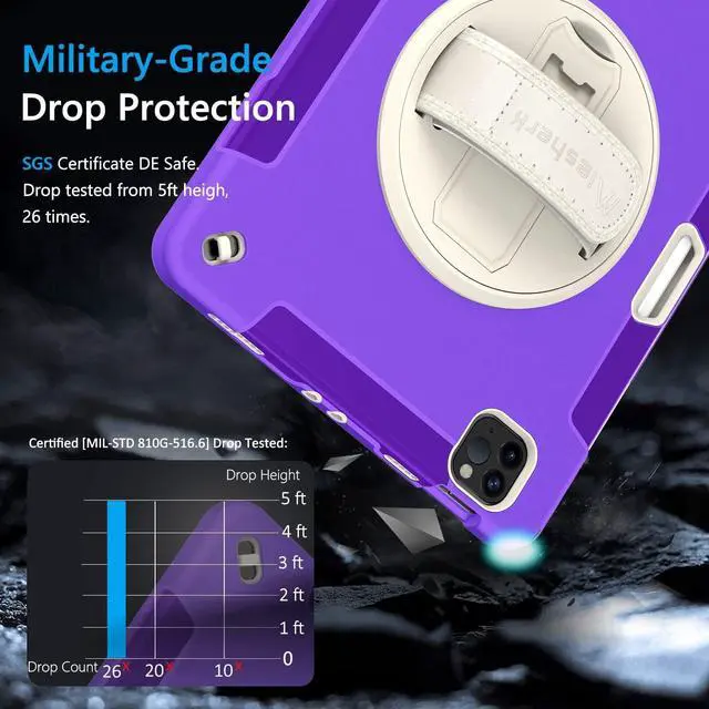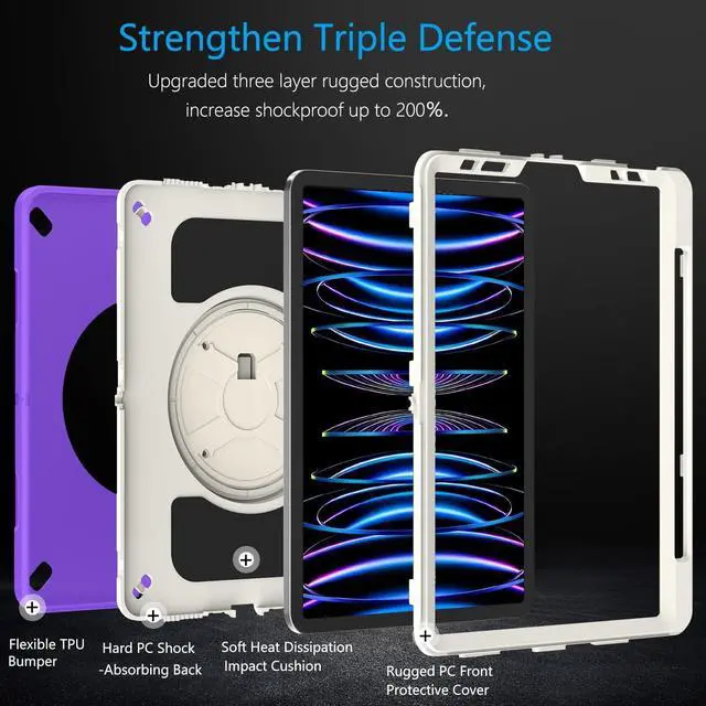 ENHANCED PROTECTION &10-SHOCK: Case for iPad Pro 11 Inch Certified [MIL-STD 810G-516.6] protection with 15ft drop tested. All-new built-in sponge technology adds extra heat-dissipation. Upgrade triple construction rugged defense armor protection cover is made of durable PC back and soft flexible TPU bumper lasts 10× shock-resistant.