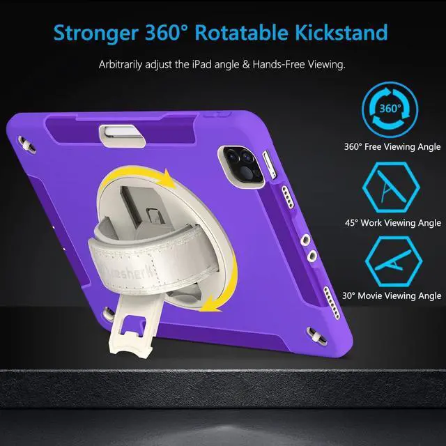 STABLE ROTATABLE KICKSTAND & ADJUSTABLE HANDHELD: 360° rotating foldable stand provides multiple angles(30°/45°/60°), nice to view, typing, or draw.Precise cutout perfectly aligns up to ports, controls to easily access all iPad functions.