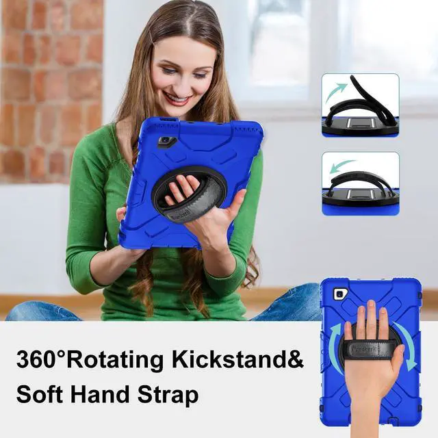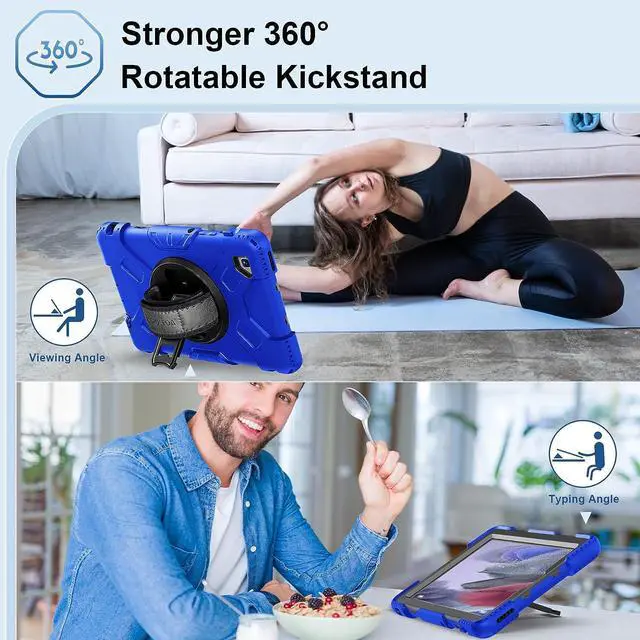 Samsung tablet a7 lite case with a soft hand strap, portable shoulder strap, and swivel stand. The 360-degree swivel stand provides multi-angle viewing, perfect for kids. You can take your tablet anywhere and don't have to worry about your tablet slipping out of your hands while traveling, working, or playing games with your kids.